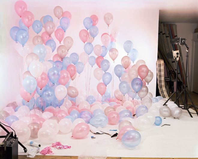 A primera vista no parece un set porno. Pero frente a estos globos pasaron mujeres y hombres desnudos que desfilaron frente a una cámara.