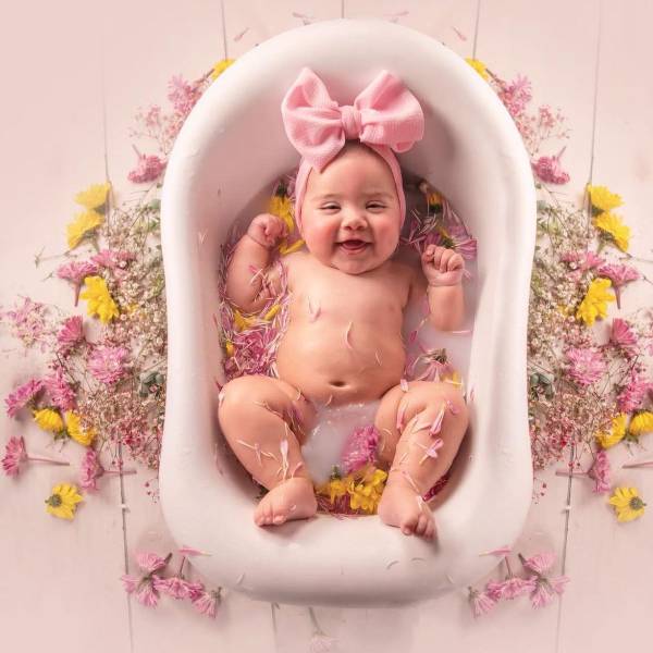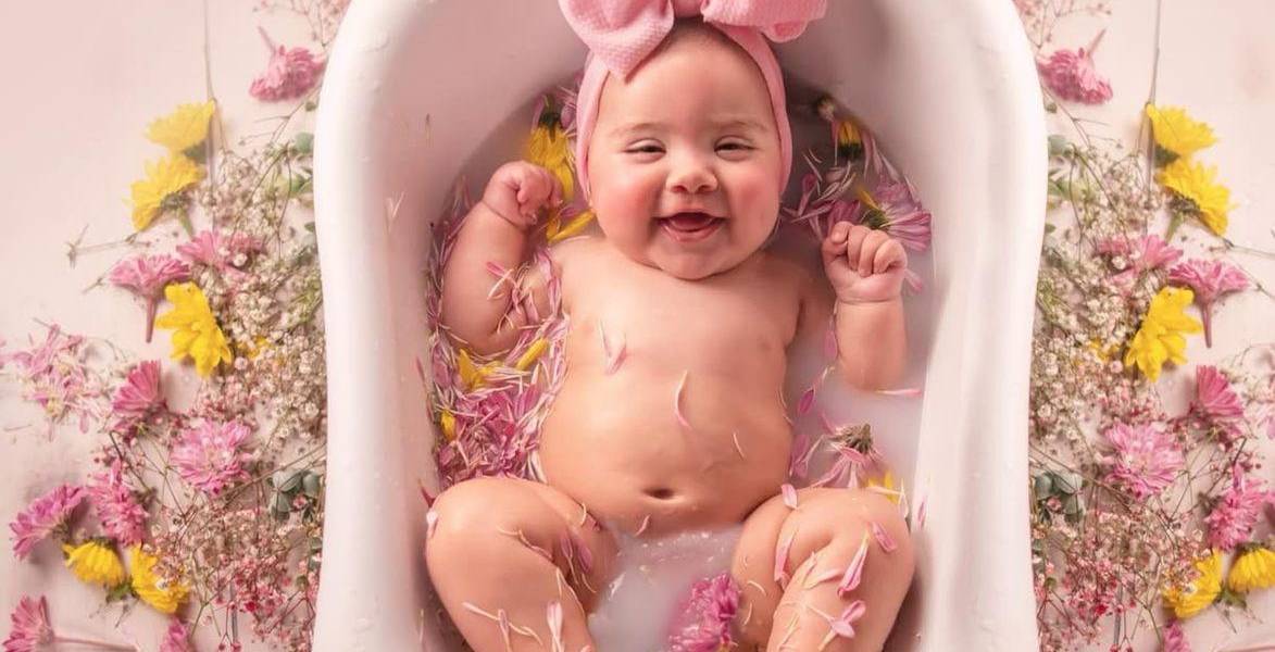 Bebé envuelta en flores, símbolo de dulzura y ternura para inspirar nombres llenos de significado( )