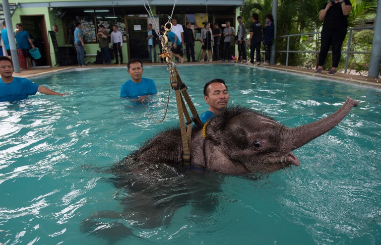Tailanda: usan piscina para que pequeña elefanta mutilada vuelva a caminar