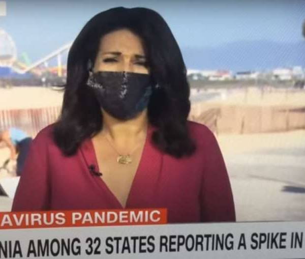 Momento en que la periodista trasmitía en directo desde una playa de Los Ángeles. Foto: Captura
