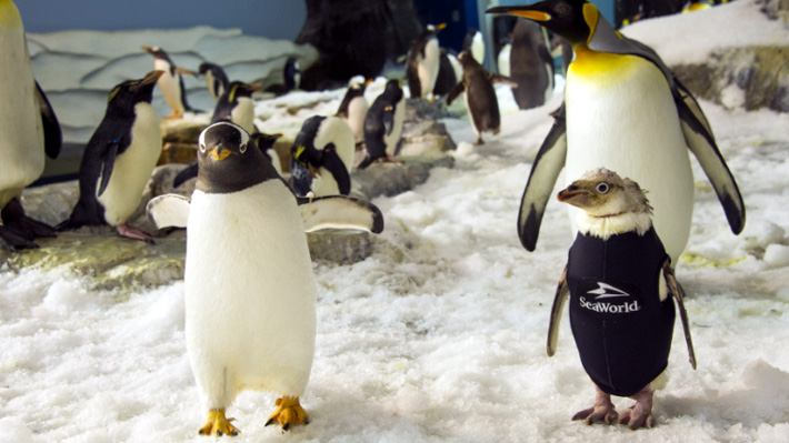 Una pingüino de edad avanzada del parque temático SeaWorld recuperó el plumaje que había perdido, gracias a un traje térmico hecho con neopreno y que fue diseñado por biólogos del centro de entretenimiento de Orlando (EE.UU.).
