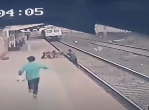 Hombre salva a niño de ser aplastado por un tren