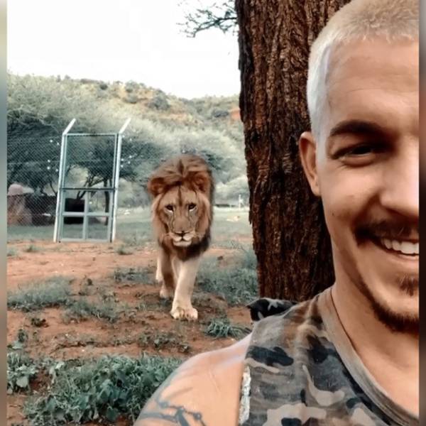 El suizo Dean Schneider, residente en Sudáfrica, que ha dedicado su vida a cuidar a animales heridos y rescatados, inmortalizó el momento. El joven compartió el clip con sus más de 3 millones de seguidores en Instagram y explicó que esta situación se debe a que el león, de nombre 'Dexter', y él son conocidos.