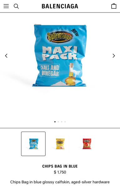 Balenciaga ha lanzado accesorios que la mayoría de personas lo ve incoherente. Otro producto que se destaca en la página web de la marca española, es en la sección de "verano 2024", donde se encuentra un bolso en forma de una funda de papas.