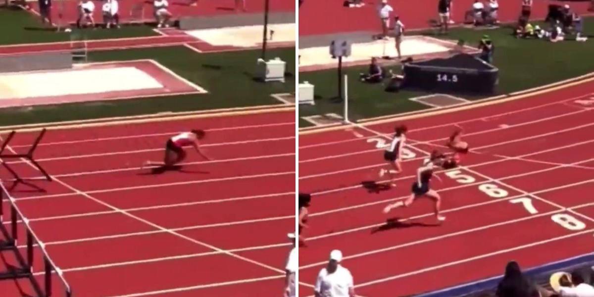 Brooklyn, que participaba en la prueba de cien metros con salto de vallas, llegó como una de las favoritas para llevarse la contienda. A pocos metros de la meta, la atleta aceleró y, al asegurar su primera posición, sorpresivamente choca con la valla de salto y cae al suelo.