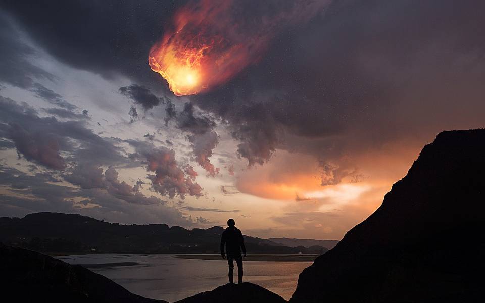 Se aprecia lo que parece ser un meteorito que cruza el cielo.