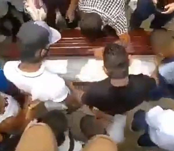 En Malambo Atlántico familiares destapan el ataúd de un hombre que falleció por Covid 19.