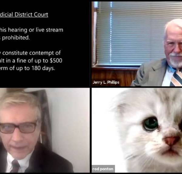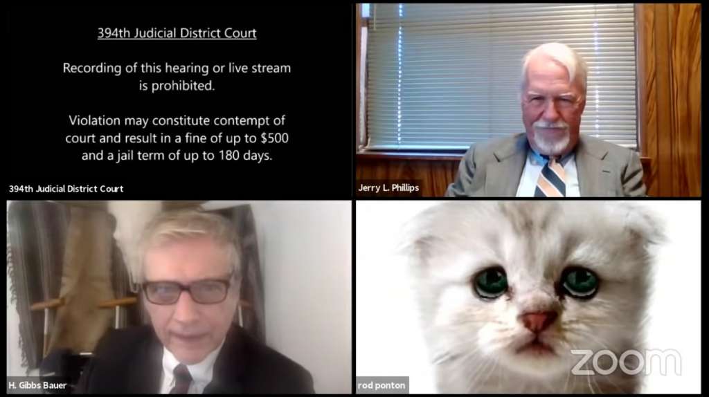 En el video se muestra cómo el abogado Rod Ponton se conectó al juicio con un filtro de gato. Vía: Europapress.