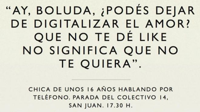 Todas esas frases están recopiladas en uno de los sitios latinoamericanos con más seguidores en redes sociales: "La gente anda diciendo". Un fenómeno que nació el 8 de diciembre de 2011 en Argentina, en un bar que ya no existe del barrio porteño de Palermo.