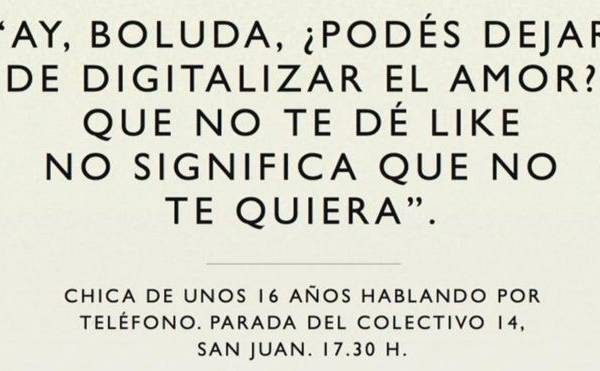 "Era un día feriado y estábamos con Tatiana Goldman, que es mi amiga y socia en este proyecto, en un barcito de la calle Gurruchaga, y en la mesa de al lado había una parejita que hablaba de celos, sexo e infidelidades, y ahí nació la idea de hacer un libro que registrara la forma de hablar de la sociedad".