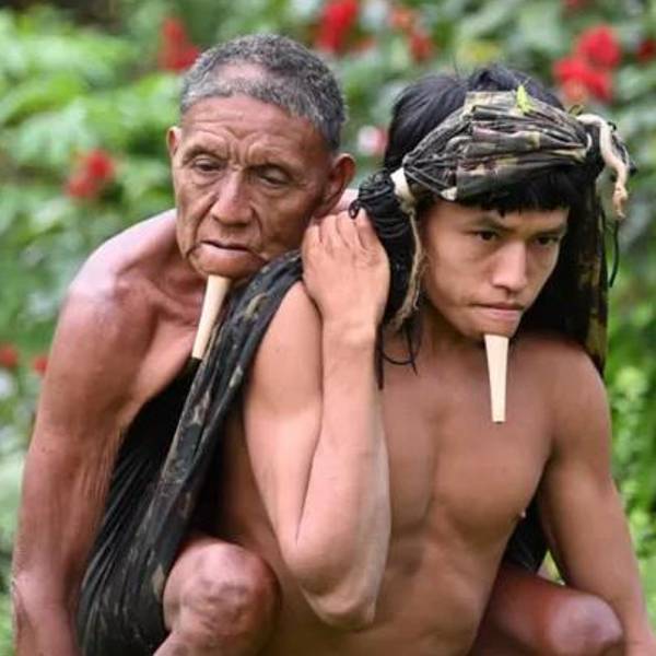Una fotografía de un indígena cargando a su padre sobre su espalda para ir a vacunarse contra la covid-19 llamó la atención de miles de personas en Brasil en las redes sociales.