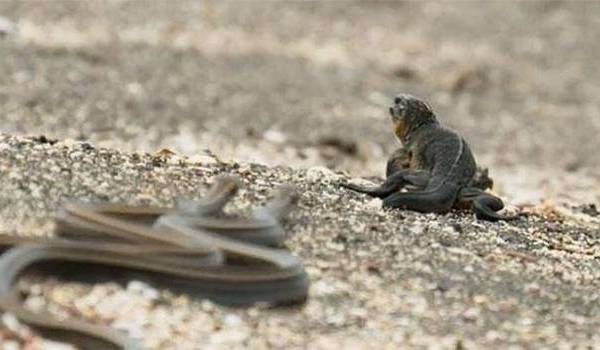 La iguana debe tomar una decisión: correr o morir ante un grupo de serpientes. El escape no es nada fácil ya que son decenas las que la intentan atrapar.
