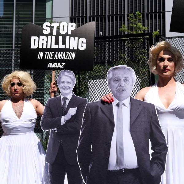 Una actuación coordinada por la organización civil Avaaz y que, con este particular "recibimiento", puso el foco en el presidente estadounidense, Joe Biden, y sus homólogos en Canadá (Justin Trudeau), Brasil (Jair Bolsonaro), Ecuador (Guillermo Lasso) y Argentina (Alberto Fernández).