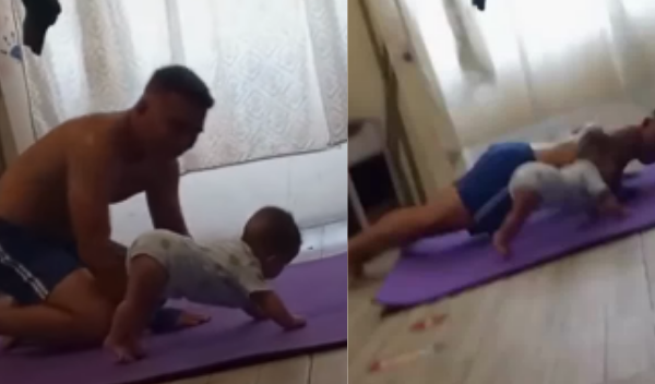 El tierno video de un padre y su hijo haciendo ejercicio que se volvió viral