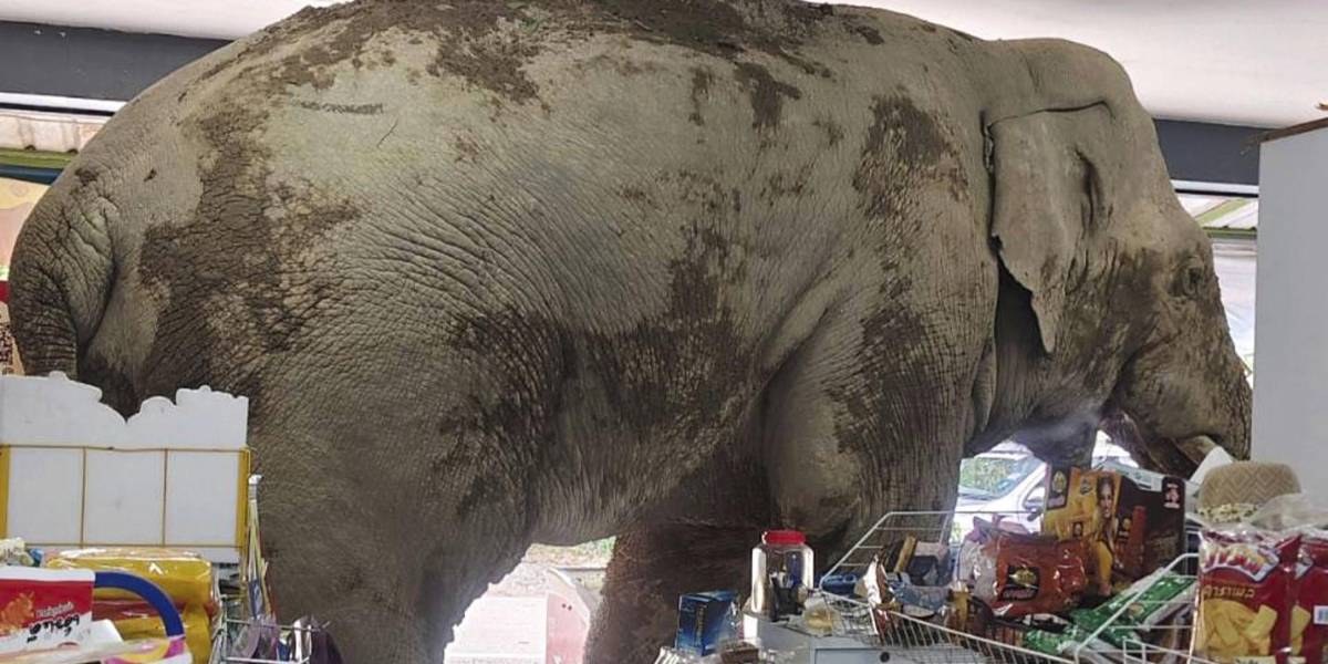 Un elefante hambriento entró a una tienda en Tailandia y empezó a comerse todo a su paso.