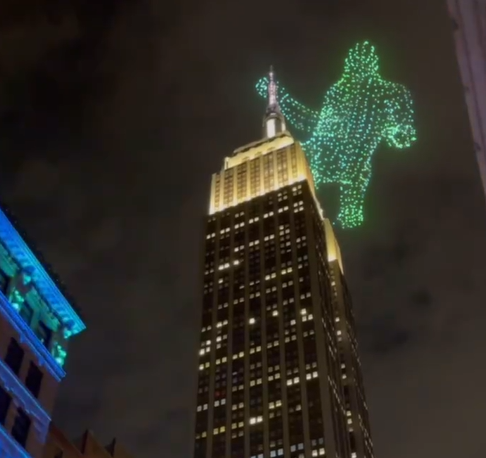 Espectáculo de drones recrea a King Kong escalando el Empire State, ¿Realidad o estrategia de marketing con IA?