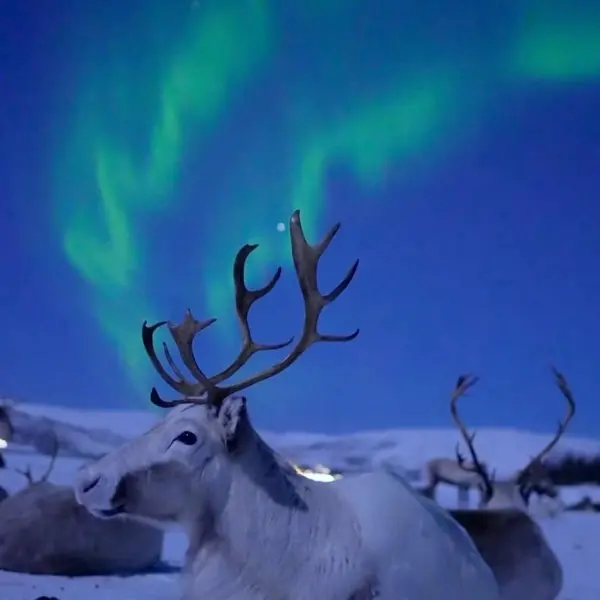 Las fotografías de renos con un espectáculo de luces naturales de fondo se viralizan en redes sociales por su belleza única y real.