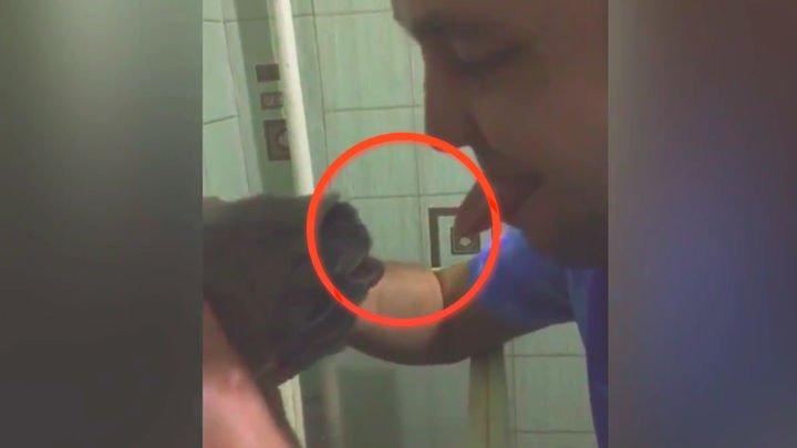 Al inicio del video se puede observar cómo el asustado animal esconde su cabeza dentro del caparazón mientras el hombre besaba al animal.