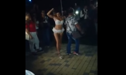 En una discoteca italiana, se desarrollaba un show con una bailarina profesional, quien en plena fiesta decidió ponerse a bailar con uno de los asistentes.