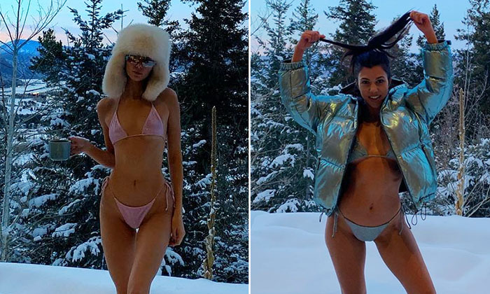 Kendall Jenner y Kourtney Kardashian sorprenden al posar en bikini en medio de la nieve