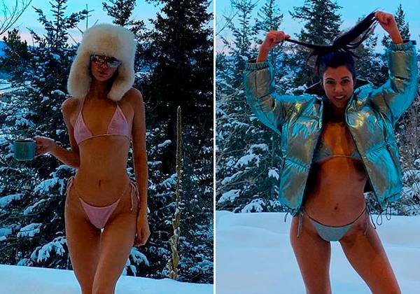 Ahora, Kendall y Kourtney revolucionaron las redes sociales al aprovechar el paisaje invernal y posar cada una con un diminuto bikini en medio de la nieve. La diferencia de los looks estuvo en los accesorios, Kendall lució un gorro invernal, mientras que su hermana una parka corta.