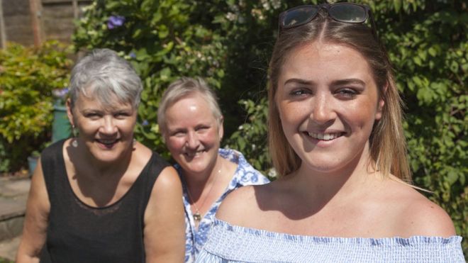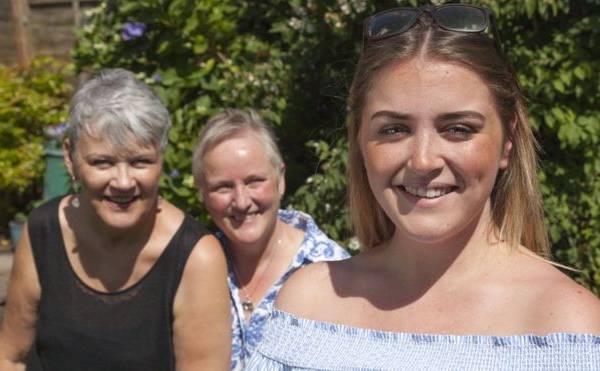 Jillian Stewart con sus dos madres, Susan y Gerrie Douglas-Scott.