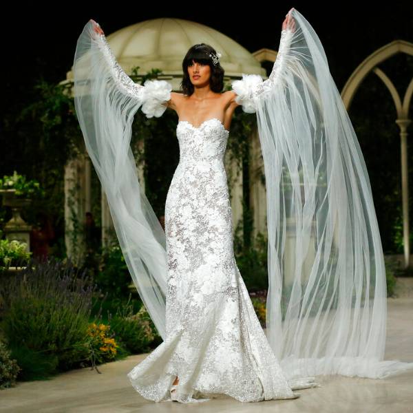 Los vestidos de novia con mangas han tenido un regreso los últimos años, pero Isom Johnson dijo que ahora se trata de mangas que hacen una declaración. Es una manera de darle un poco más de glamour, romance y drama al momento digno de Instagram de una pareja, dijo.