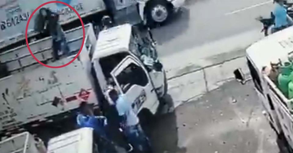Todo ocurrió luego de que en Cartagena, Colombia, un delincuente y su acompañante estacionaron su moto cerca de un camión que repartía cilindros de gas. El primero se bajó y disimuló que hablaba por teléfono para acercarse poco a poco a sus víctimas. Cuando estaba lo suficientemente cerca sacó su arma de fuego y los amenazó.