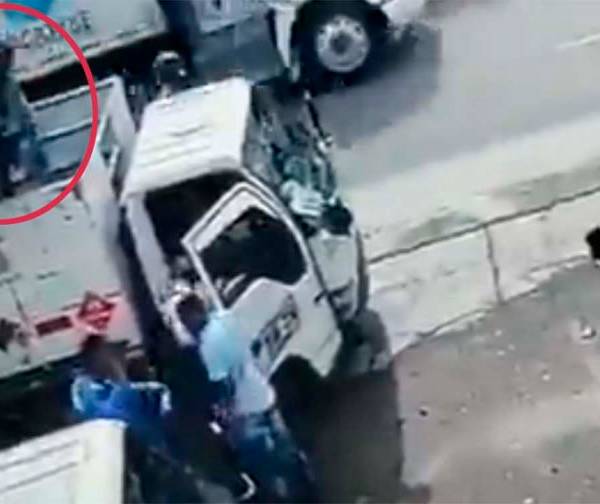 Pero el antisocial no contaba con la astucia de un repartidor de gas que estaba subido en el área de carga del transporte, quien levanta el tanque que tiene en las manos y se lo avienta al ladrón.