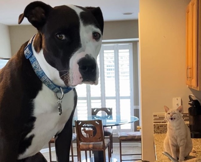 Mako, el curioso pitbull que se cree gato. Foto: Instagram