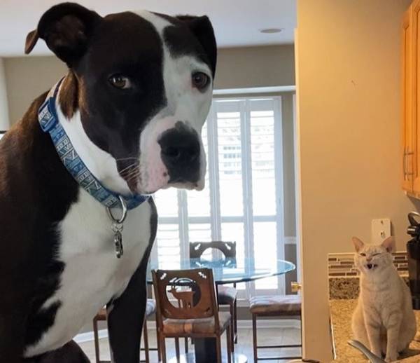 Mako es un perro de raza pitbull de dos años que cautiva a la Red por una sencilla razón: se comporta como un gato. Cuando sus dueños lo adoptaron les aseguraron que se llevaría bien con sus gatos, pero no pensaron que a tal punto. El can se cree uno de sus hermanos y no ladra, come golosinas de minino y le encanta trepar muebles y mesas.