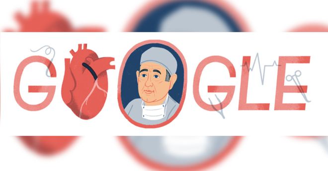 El doodle de Google que homenajea a René Favaloro en el 96° aniversario de su nacimiento.