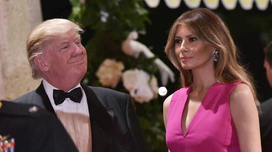 con su marido, el presidente de EE.UU. Donald Trump, para una foto conjunta.