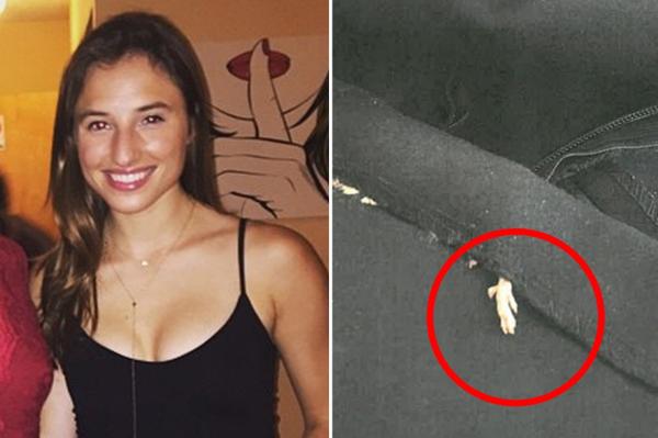 Finalmente notó que algo, que pensó que era un hilo, le rozaba la pierna. Cuando trató de arrancarlo, percibió un bulto entre las costuras. Fue entonces que se dio cuenta de que no era un hilo, sino la pata de una rata muerta. El resto del cuerpo del roedor estaba atrapado entre las telas.