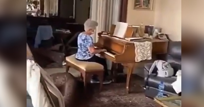 Un ejemplo de esto es el video de una adulta mayor, que fue grabada en su hogar mientras tocaba el piano. Alrededor de ella se puede ver lo dañada que quedó su casa tras el potente estallido.