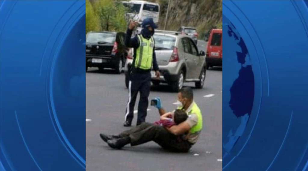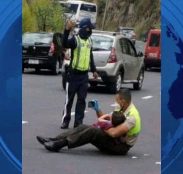Según diario El Universo, el gendarme, al ver que el pequeño estaba herido y lloraba, decidió sentarse con él sobre el suelo para consolarlo y entretenerlo con videos que puso su celular.