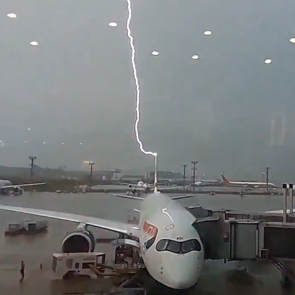 El hecho fue registrado por un pasajero que esperaba que la tormenta pasara para abordar su vuelo. El rayo golpea directamente la cola del avión en repetidas ocasiones, lo que motivó que se llevaran a cabo controles de seguridad adicionales.