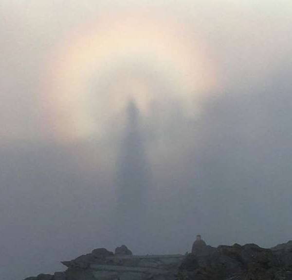 Según la Oficina Meteorológica, un 'espectro de Brocken' es una gran sombra de un observador proyectada por el Sol sobre una nube o niebla. De esta manera se puede tener la ilusión de que la sombra es una persona que se ve débilmente a través de la niebla.