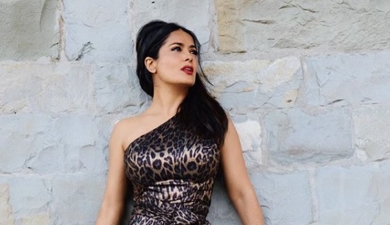 Salma Hayek posa enfundada en látex negro y rubia. Foto: IG
