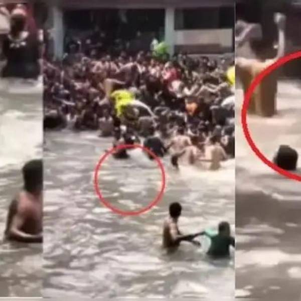 Un momento de terror se vivió en un parque acuático de Dehradun, Uttarakhand en la India, cuando una serpiente apareció inesperadamente en la piscina abarrotada de bañistas