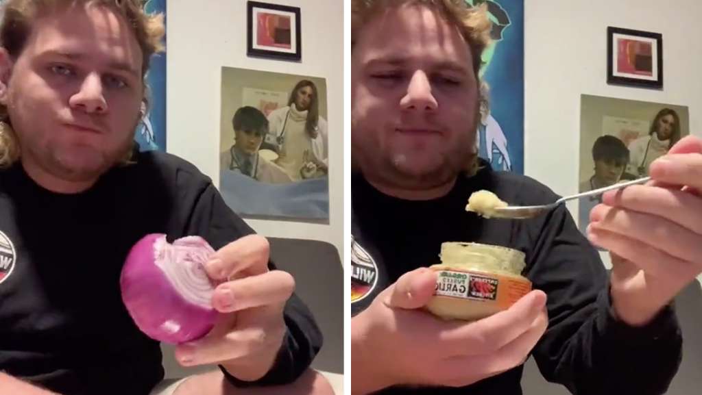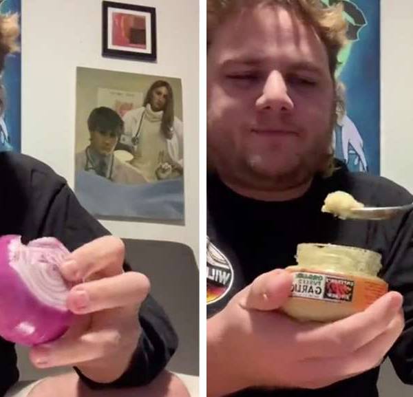 Russell Donnelly se grabó comiendo cebollas y ajos.