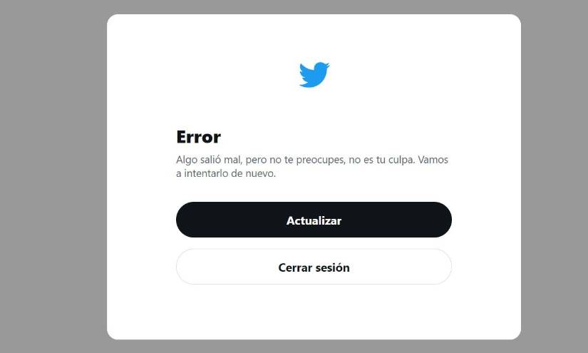 Cuando los usuarios intentan entrar en Twitter se despliega el mensaje de error e invita a intentarlo de nuevo más tarde, mientras que los que ya lo estaban usando no pueden cargar los nuevos tuits.