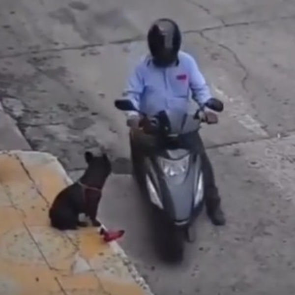 VIDEO | Momento en que un motociclista arrebata el juguete a un perrito en la calle