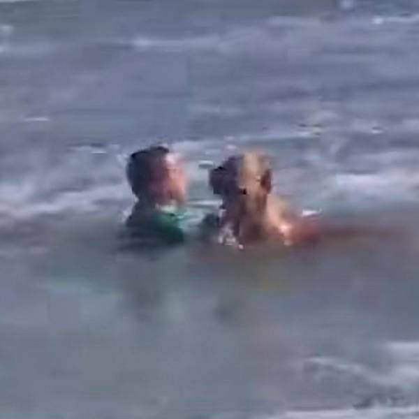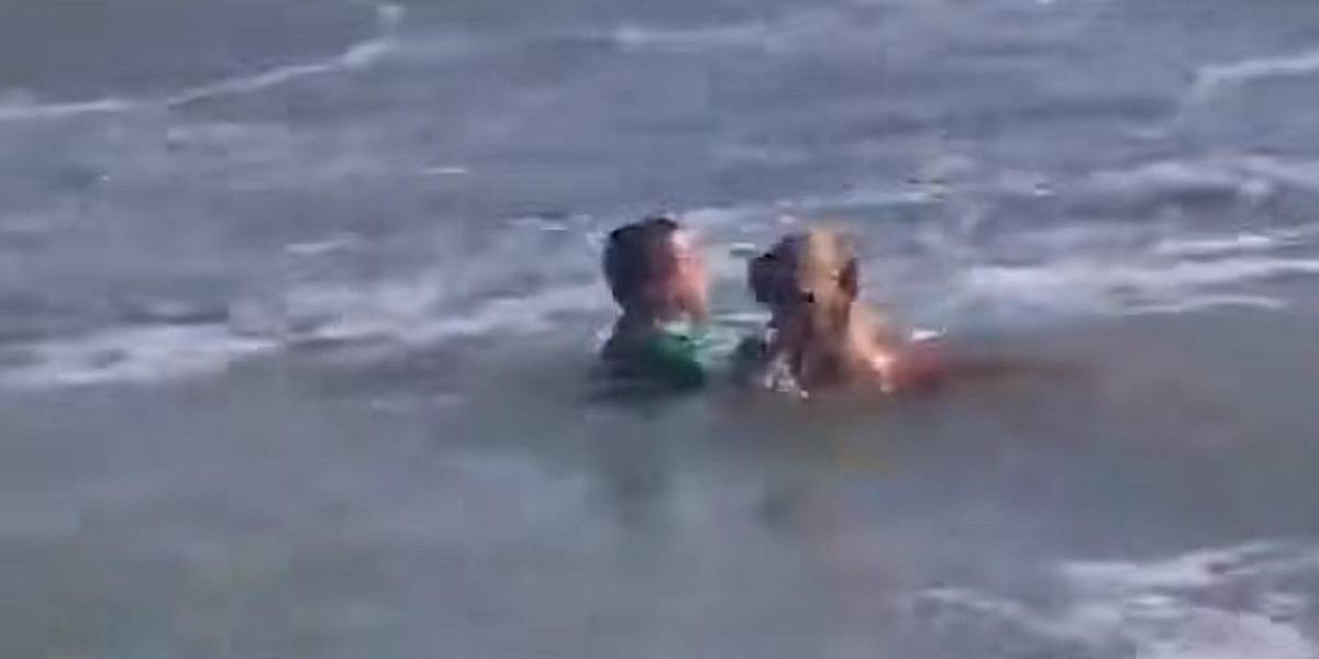 Ante la escena, un hombre que se encontraba en la playa ingresó al mar y nadó hasta alcanzar al animal. Tras varios segundos de tensión, logró sujetarlo y acompañarlo de regreso hasta la orilla, donde el perro fue recibido por su familia.