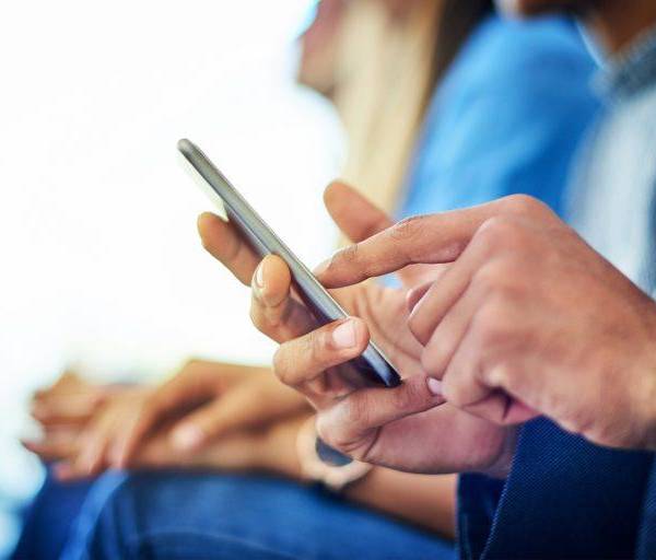 Una persona usando su celular en una foto referencial( )