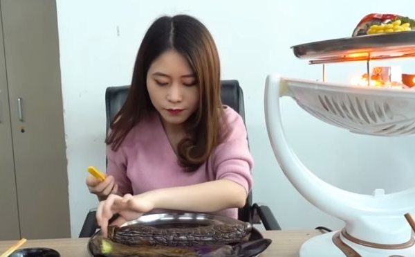 La estrella de YouTube aparece inexpresiva en la mayoría de las grabaciones, que muestran a sus colegas sentados sin preocupación mientras ella cocina carne y ostras, por ejemplo, con herramientas de oficina.