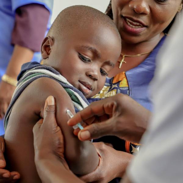 Vacunación de un niño contra el sarampión en República Democrática del Congo. ( )