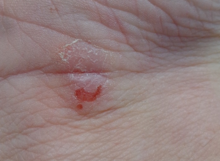 Las erupciones acrales similares a sabañones (manos y pies) aparecían como áreas de eritema o violáceas, vesículas y pústulas. Son frecuentemente asimétricas. Este tipo de lesiones se detectó en el 19% de los casos, en pacientes más jóvenes, en las etapas tardías del proceso Covid-19, con una duración de 12,7 días y estaban asociados a un pronóstico menos grave.
