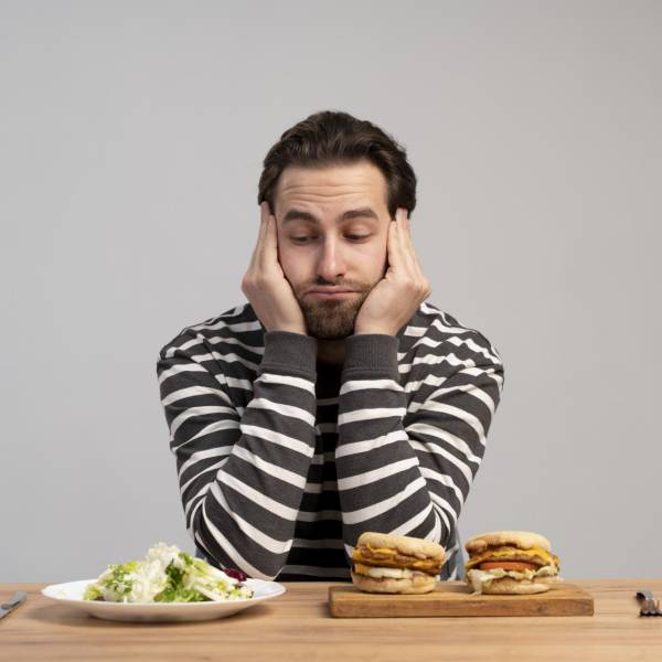Persona con trastorno alimentario tratando de comer sano.( )