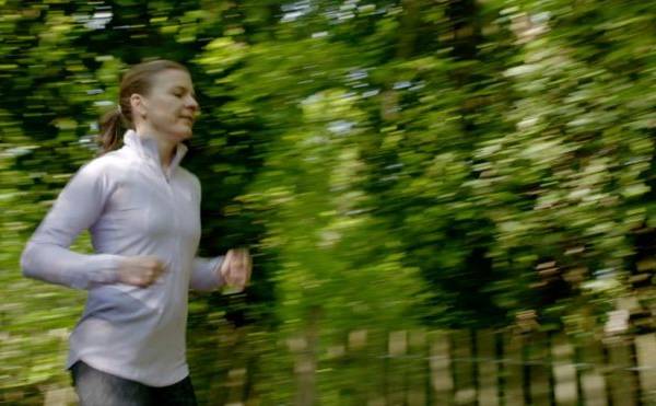 Corriendo entre los árboles, las hojas caídas crujiendo bajo sus pies, Valerie Stephan se concentra en su trote matutino y en paz.